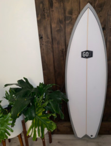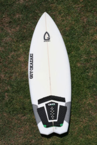 This is a versatile small wave board. It is different than others with its wider nose and additional rocker to keep the nose from catching. This year the round tails are set up with tri-fins.